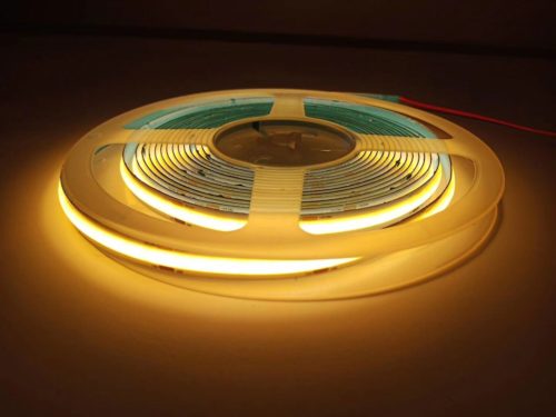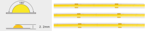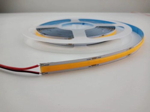 3.Flex cob light strip has an ideal inner structure and more simple way for heat-dissipation.All the heat-dissipation of fcob LED strips are done on the tiny package platform itself, no extra intermediary needed at all. SMD LED tape light,like SMD5050, SMD3528 or SMD2835 led strip lights are always radiating through flexible PCB or some other heating adhesives, which is more complicated for quality controllings.