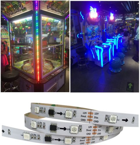 SMD5050 is one of the most popular led lights source for led strip lights. It’s size of 50*50mm with bigger lighting surface areas. It’s made by three different chips inside the structure giving various colors.If people want RGB colors or multi-colors, SMD5050 is the best choice. Certainly, it can be in white color, warm white, cold white, red, blue, green, amber, pink,purple the same as other type led tape lights. Nowadays, people customized in different shapes and sizes to meet their requirements,especially smd5050 led strip lights for amusement equipments,game machines,balance scooters, boats and yacht ect.